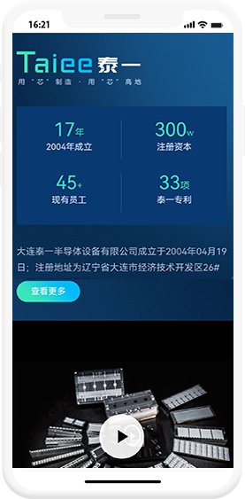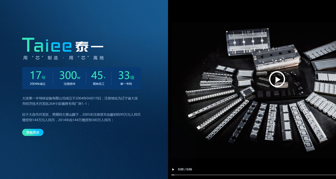 公司成立于2004年04月19日;公司位于大連市開(kāi)發(fā)區(qū),美麗的大黑山腳下,2005年注冊(cè)資本由最初的99萬(wàn)元人民幣增資到144萬(wàn)元人民幣,2014年由144萬(wàn)增資到300萬(wàn)人民幣;現(xiàn)有員工近45人;專業(yè)從事設(shè)計(jì)制造銷售半導(dǎo)體封裝模具及相關(guān)自動(dòng)化設(shè)備。