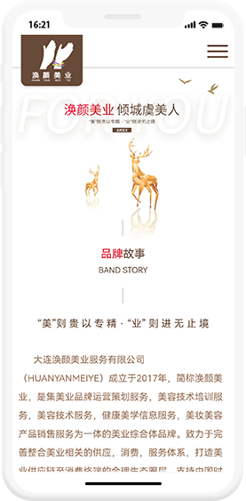 大連渙顏美業服務有限公司成立于2017年,簡稱渙顏美業,是集美業品牌運營策劃服務,美容技術培訓服務,美容技術服務,健康美學信息服務,美妝美容產品銷售服務為一體的美業綜合體品牌。致力于完善整合美業相關的供應,消費,服務體系,打造美業供應鏈至消費終端的合理生態圈層,支持中國時尚美容產業發展,立志成為有國際影響力的Chinese beauty industry icon。