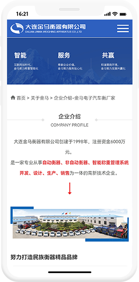 大連金馬衡器有限公司創(chuàng)建于1998年,注冊資金6000萬元。 是一家專業(yè)從事自動(dòng)衡器、非自動(dòng)衡器、智能稱重管理系統(tǒng)開發(fā)、設(shè)計(jì)、生產(chǎn)、銷售為一體的高新技術(shù)企業(yè)。